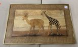 Wood Inlay African Animals Artwork Framed , 20"w., 13"h. Location Back Wall Wood Inlay African Animals Artwork Framed , 20"w., 13"h. Location Back Wall
