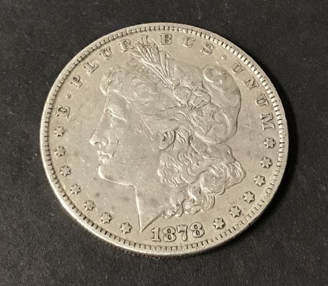 1878 Morgan silver dollar, 7 tail feathers, fine. 1878 Morgan silver dollar, 7 tail feathers, fine.