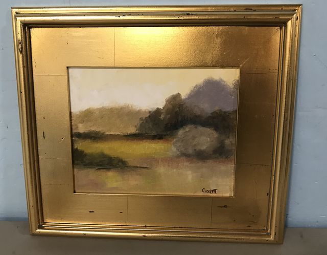 Cathy Crockett Landscape Painting, on canvas, signed lower right, gold gilt framed, 14"h., 16"w. Cathy Crockett Landscape Painting, on canvas, signed lower right, gold gilt framed, 14"h., 16"w.
