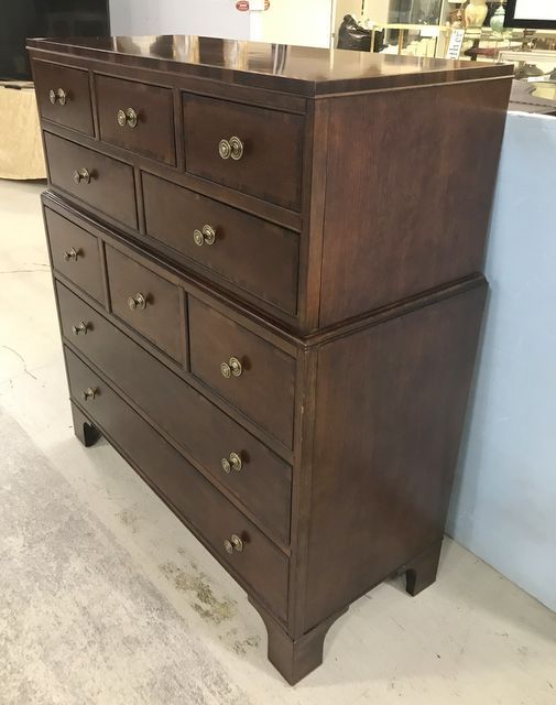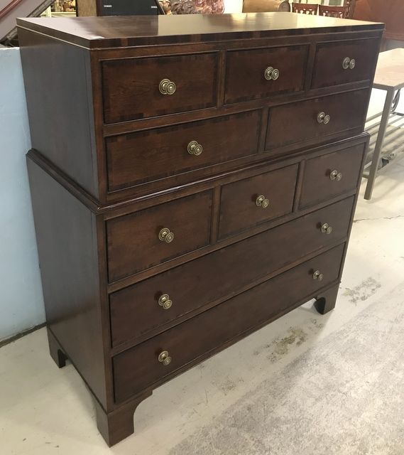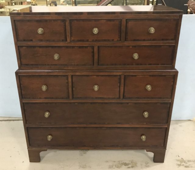 Antique Reproduction Commode Haute High Dresser, good condition, 10 drawers, working condition, banded trim, cherry, 50"h., 45"w., 19"d. Antique Reproduction Commode Haute High Dresser, good condition, 10 drawers, working condition, banded trim, cherry, 50"h., 45"w., 19"d.