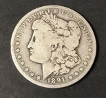 1891-O Morgan Silver dollar, good. 1891-O Morgan Silver dollar, good.