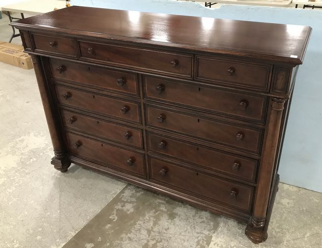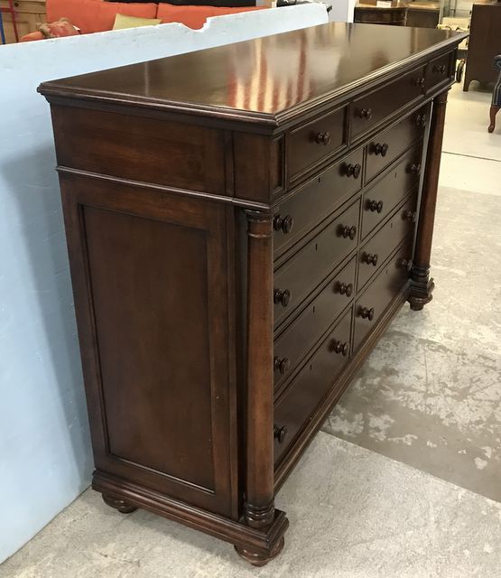 Thomasville tall double dresser, 11 drawers, Early American style, cherry, good condition, 46"h., 64"w., 21"d. Thomasville tall double dresser, 11 drawers, Early American style, cherry, good condition, 46"h., 64"w., 21"d.