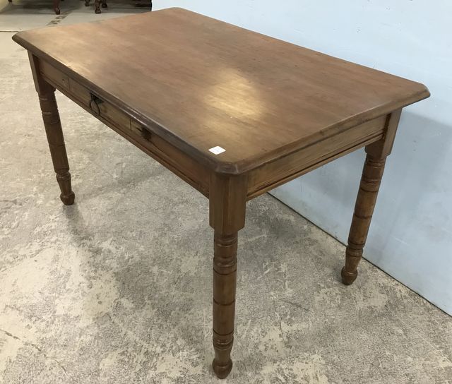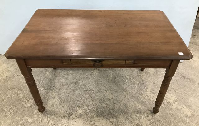 Sold Wood Antique Farm Table, faux drawer, carved legs, good condition, 28"h., 48"w., 28"d. Sold Wood Antique Farm Table, faux drawer, carved legs, good condition, 28"h., 48"w., 28"d.