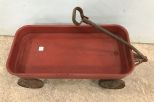 Old Western Flyer Red Wagon, original wheels with handle, been painted, 24"w., 9"h. Old Western Flyer Red Wagon, original wheels with handle, been painted, 24"w., 9"h.