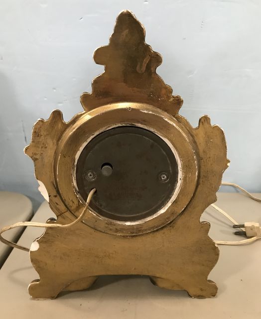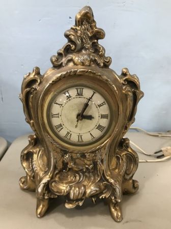 Lanshire Movement French Style Mantel Clock, gold painted ceramic mold, Lanshire electrified movement, vintage, 12"h. Lanshire Movement French Style Mantel Clock, gold painted ceramic mold, Lanshire electrified movement, vintage, 12"h.