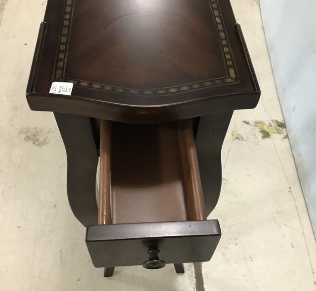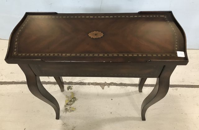 Sevens Seas by Hooker Furniture Console Table, antique reproduction, painted trim work and emblem, single drawer, 30"h., 28"w., 11"d. Sevens Seas by Hooker Furniture Console Table, antique reproduction, painted trim work and emblem, single drawer, 30"h., 28"w., 11"d.