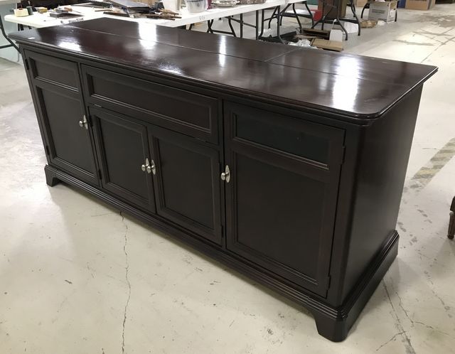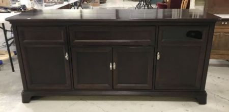 Large Modern Cherry TV Dresser, four doors, motorized TV lift, good condition, 35"h., 78"w., 25"d. Large Modern Cherry TV Dresser, four doors, motorized TV lift, good condition, 35"h., 78"w., 25"d.
