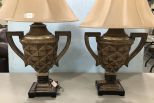 Pair of Decorative Resin Urn Table Lamps, good shades, new condition, 32"h. Pair of Decorative Resin Urn Table Lamps, good shades, new condition, 32"h.