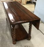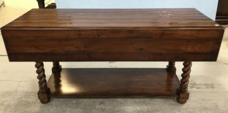 Antique Reproduction Barley Twist Drop Leaf Farm Table, two tier, 30"h., 66"long. Antique Reproduction Barley Twist Drop Leaf Farm Table, two tier, 30"h., 66"long.