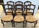 Six Antique Reproduction Country French Dining Chairs, cherry, woven seat cushions, good condition. Six Antique Reproduction Country French Dining Chairs, cherry, woven seat cushions, good condition.