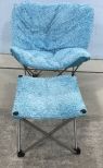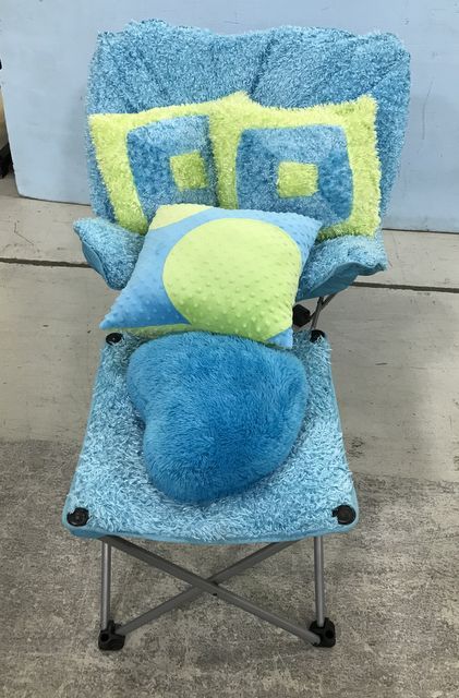 Decorative Blue Shag Chair and Ottoman, throw pillows, fold up. Decorative Blue Shag Chair and Ottoman, throw pillows, fold up.