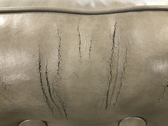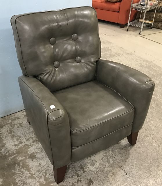 Lane Industries Grey Vinyl Recliner, modern decor, tufted button, has some age cracking in few spots, over all good chair. Lane Industries Grey Vinyl Recliner, modern decor, tufted button, has some age cracking in few spots, over all good chair.