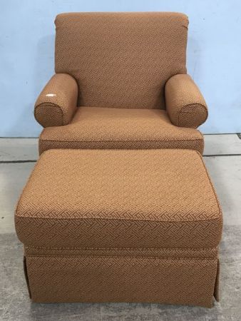 Something Southern Upholstered Arm Chair and Ottoman, Interior Design, Oxford, Mississippi, good condition, like new, 36"h., 35"w. Something Southern Upholstered Arm Chair and Ottoman, Interior Design, Oxford, Mississippi, good condition, like new, 36"h., 35"w.