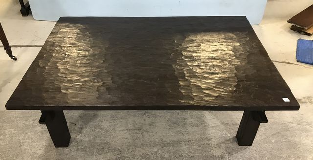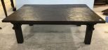 Large Oriental Style Carved Wood Coffee Table, dark finish, modern piece, 18"h., 54"w., 36"d. Large Oriental Style Carved Wood Coffee Table, dark finish, modern piece, 18"h., 54"w., 36"d.