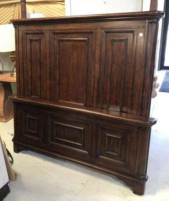 Antique Reproduction Cherry High Back Queen Bed, wood matching rails, good condition. Antique Reproduction Cherry High Back Queen Bed, wood matching rails, good condition.
