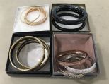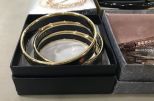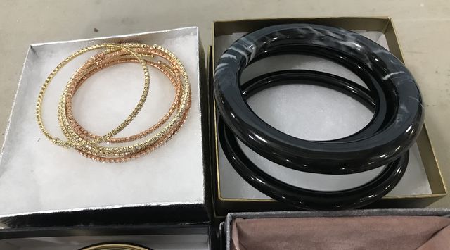 Brass American bracelets, gold tone group of bracelets, silver tone bracelets with clear stones, marble style glass bracelets. Brass American bracelets, gold tone group of bracelets, silver tone bracelets with clear stones, marble style glass bracelets.