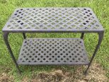 Cast Metal Two Tier Patio Table, woven pattern, good condition. Cast Metal Two Tier Patio Table, woven pattern, good condition.