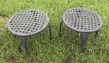 Two Pair of Cast Metal Side Table, woven pattern top. Two Pair of Cast Metal Side Table, woven pattern top.