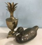 565 Brass Pineapple Container and Brass Duck Decoy