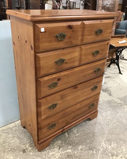 601 Bassett Furniture Rustic Pine Five Drawer Chest