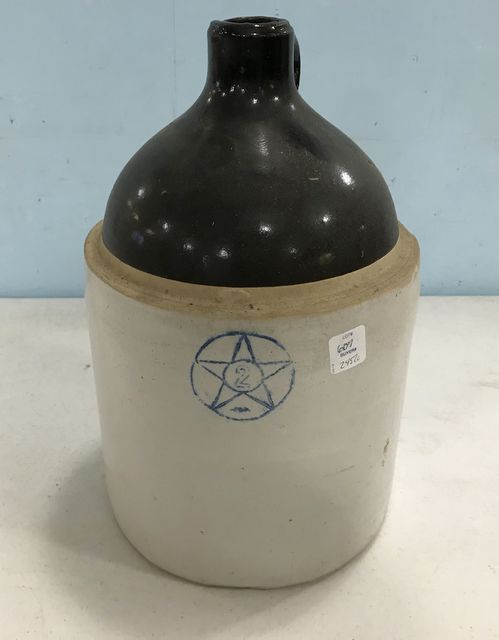 Number 2 Stoneware Crock Jug, brown, with cork, 14"h. Number 2 Stoneware Crock Jug, brown, with cork, 14"h.