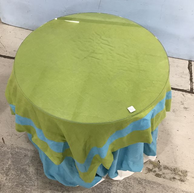 Hand Made Wood Skirted Lamp Table, glass top, 28"h., 30"dia. Hand Made Wood Skirted Lamp Table, glass top, 28"h., 30"dia.