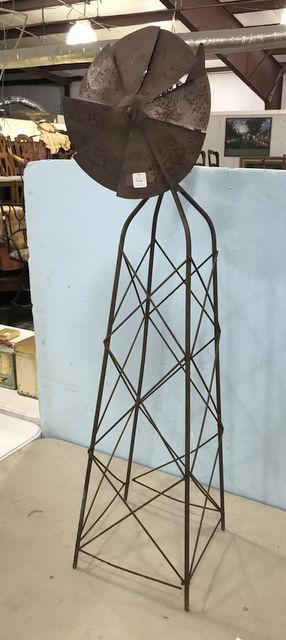 Vintage Iron Mini Wind Mill, working condition, has age wear, 45"h. Vintage Iron Mini Wind Mill, working condition, has age wear, 45"h.