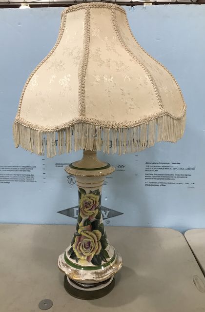 Hand Painted Porcelain Table Lamp Signed, shade, signed Dunn Hall, 31"h. Hand Painted Porcelain Table Lamp Signed, shade, signed Dunn Hall, 31"h.