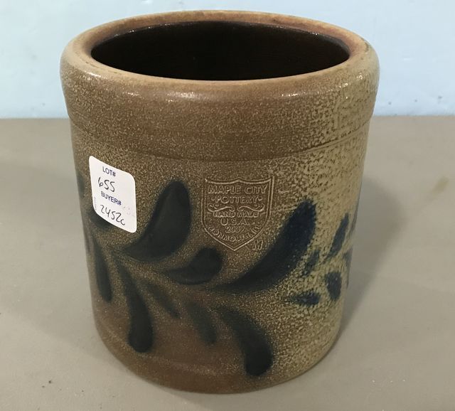 Maple City Pottery Crock, good condition, hand painted, 5 1/2"h., 5"dia. Maple City Pottery Crock, good condition, hand painted, 5 1/2"h., 5"dia.