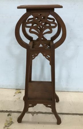 Antique Art Deco Plant Stand, carved trim, two tier, 44"h., 15"w. Antique Art Deco Plant Stand, carved trim, two tier, 44"h., 15"w.