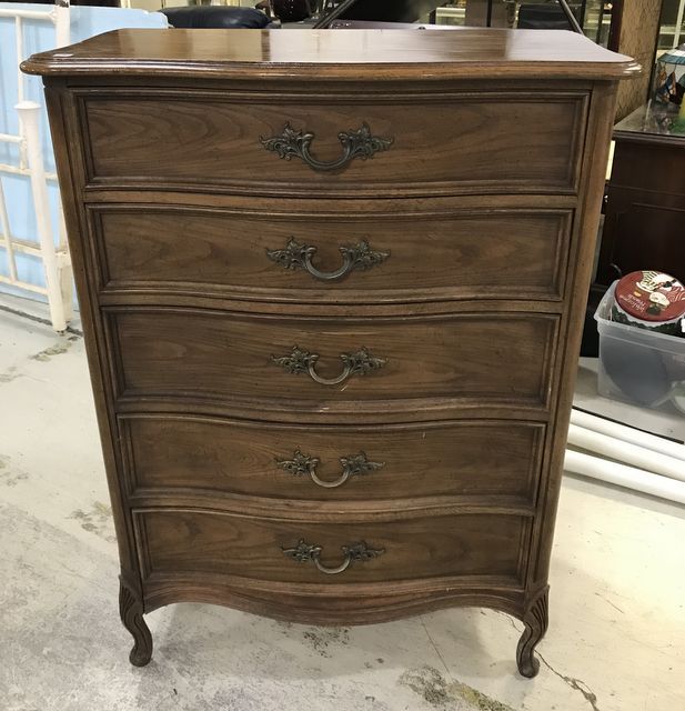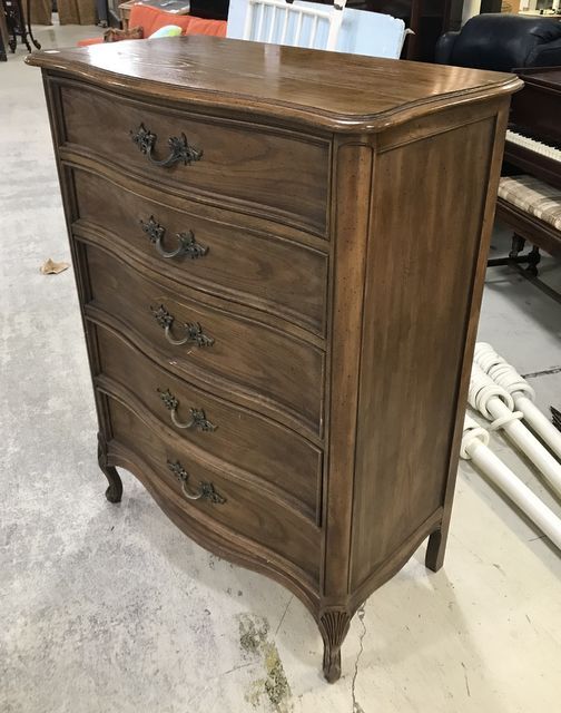 Drexel Country French "DuBarry" Tall Chest, five drawers, above average condition, light wear, 49"h., 36"w., 20"d. Drexel Country French "DuBarry" Tall Chest, five drawers, above average condition, light wear, 49"h., 36"w., 20"d.