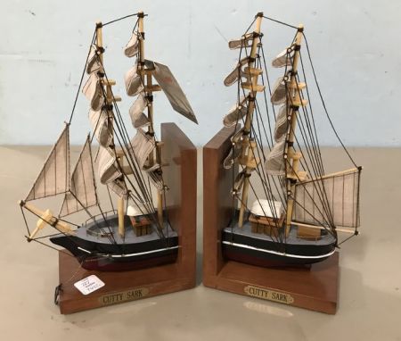 Cutty Sark ship book ends, new condition, 12"h. Cutty Sark ship book ends, new condition, 12"h.