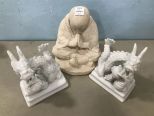 Pair of white porcelain Dragon bookends, and Buddha statue. Pair of white porcelain Dragon bookends, and Buddha statue.