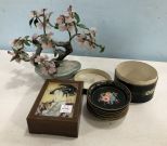 923 Faux Jade Tree, Chinese Trinket Box, and Japanese Hand Painted Coasters