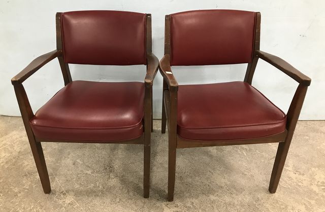 Two Captains Desk Chairs, red vinyl upholstery, 31"h. Two Captains Desk Chairs, red vinyl upholstery, 31"h.