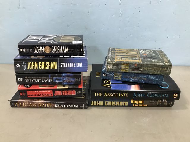 Group of John Grisham Paper Back and Hard Back Books, Client, Street Lawyer, Rain Maker, Pelican Brief, Roge Lawyer, Associate, The firm, 10 total. Group of John Grisham Paper Back and Hard Back Books, Client, Street Lawyer, Rain Maker, Pelican Brief, Roge Lawyer, Associate, The firm, 10 total.