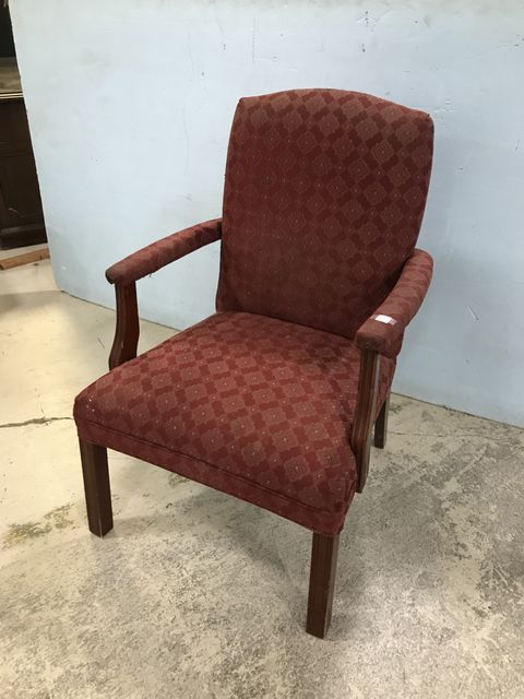 Chippendale Style Modern Arm Chair, upholstered cushion, has wear, one are is slightly loose, 39"h. Chippendale Style Modern Arm Chair, upholstered cushion, has wear, one are is slightly loose, 39"h.