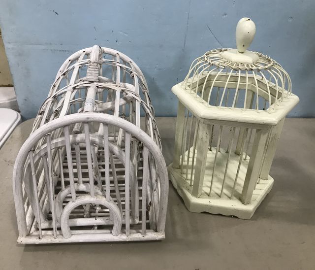 Three Wood Decorative Bird Cages, hand painted. Three Wood Decorative Bird Cages, hand painted.