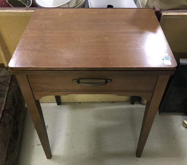 Singer Sewing Machine in Cabinet, lift top, faux drawer, 30"h., 24"w., 18"d. Singer Sewing Machine in Cabinet, lift top, faux drawer, 30"h., 24"w., 18"d.