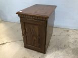 Oak Pressed Stand and Magazine Rack, single door, back rack, 20"h., 13"w. 19"d. Oak Pressed Stand and Magazine Rack, single door, back rack, 20"h., 13"w. 19"d.