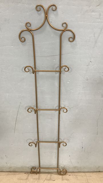 Wall Hanging Metal Plate Rack, gold painted, 45"h. Wall Hanging Metal Plate Rack, gold painted, 45"h.