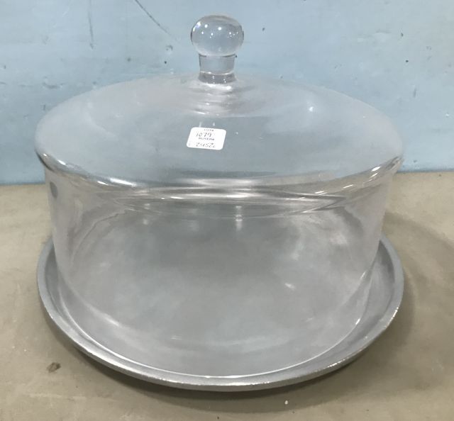 Large Glass Dome with Metal Under plate, 9"h., 14"w. Large Glass Dome with Metal Under plate, 9"h., 14"w.