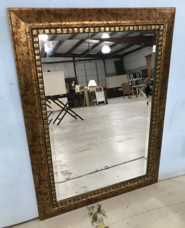 Style Craft Decorative Beveled Wall Mirror, distressed gold color frame, 44"h., 32"w. Style Craft Decorative Beveled Wall Mirror, distressed gold color frame, 44"h., 32"w.