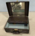 Alligator Style Skin Make Carrying Case, push button latch, Congress brand, with make up mirror, 5"h., 13"w. Alligator Style Skin Make Carrying Case, push button latch, Congress brand, with make up mirror, 5"h., 13"w.