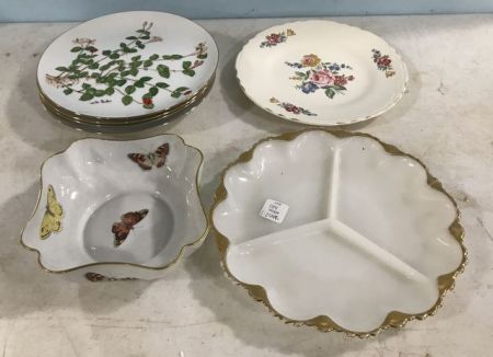 1114 Lucile Parker Collectible Plates, Milk Glass Gold Rim Dish, and Butterfly Candy Dish