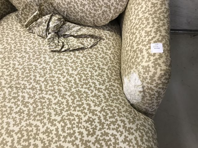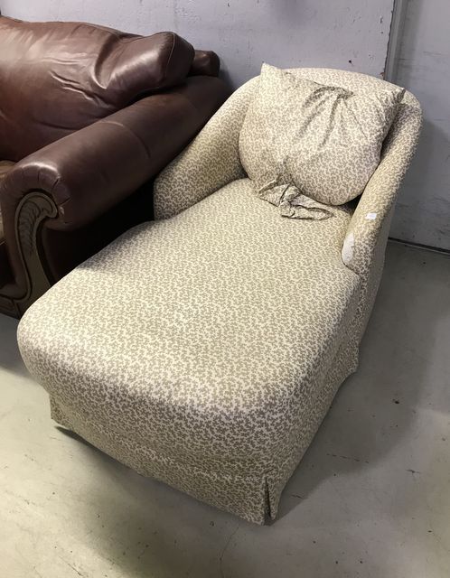 Upholstery Chaise Lounger, has worn spots on fabric, mahogany feet, skirted, 30"h.,needs re upholstery , 56"L. Upholstery Chaise Lounger, has worn spots on fabric, mahogany feet, skirted, 30"h.,needs re upholstery , 56"L.