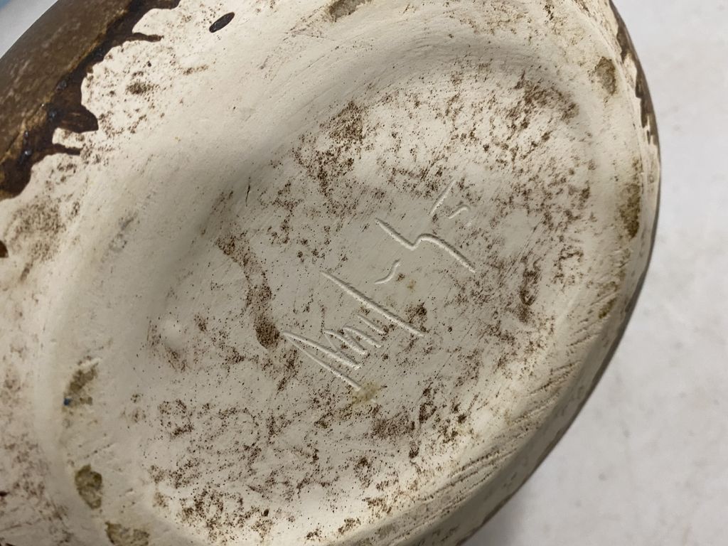 McCarty Nutmeg Water Pitcher, signed on bottom, good condition, 9"h., 8"w. McCarty Nutmeg Water Pitcher, signed on bottom, good condition, 9"h., 8"w.