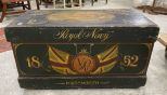 Antique Black Painted Storage Trunk, Royal Navy 1852 Portsmouth, aged condition, functional, 20"h., 37"w., 18"d. Antique Black Painted Storage Trunk, Royal Navy 1852 Portsmouth, aged condition, functional, 20"h., 37"w., 18"d.