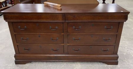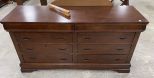 Modern Cherry Double Dresser with Mirror, 6 drawers with two hidden drawers, good condition, 36"h., 68"w., 20"d. Modern Cherry Double Dresser with Mirror, 6 drawers with two hidden drawers, good condition, 36"h., 68"w., 20"d.