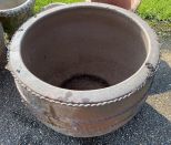 Large Terra Cotta Planter, has design, heavy, good condition 23"h., 32"dia. Large Terra Cotta Planter, has design, heavy, good condition 23"h., 32"dia.